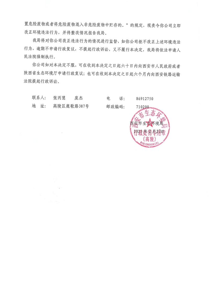 西安市生態(tài)環(huán)境局責令改正違法行為決定書陜A高陵環(huán)違改〔2023〕C-1號