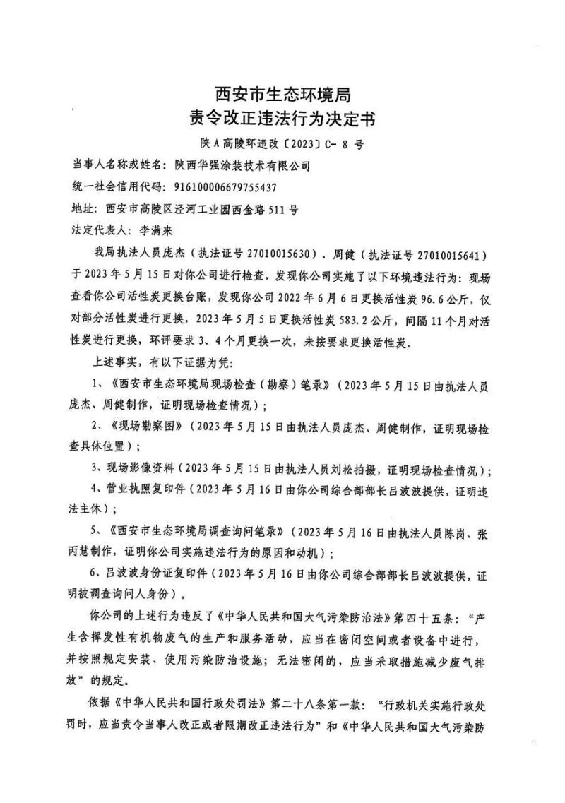西安市生態(tài)環(huán)境局責(zé)令改正違法行為決定書(shū)陜A高陵環(huán)違改〔2023〕C-8號(hào) |