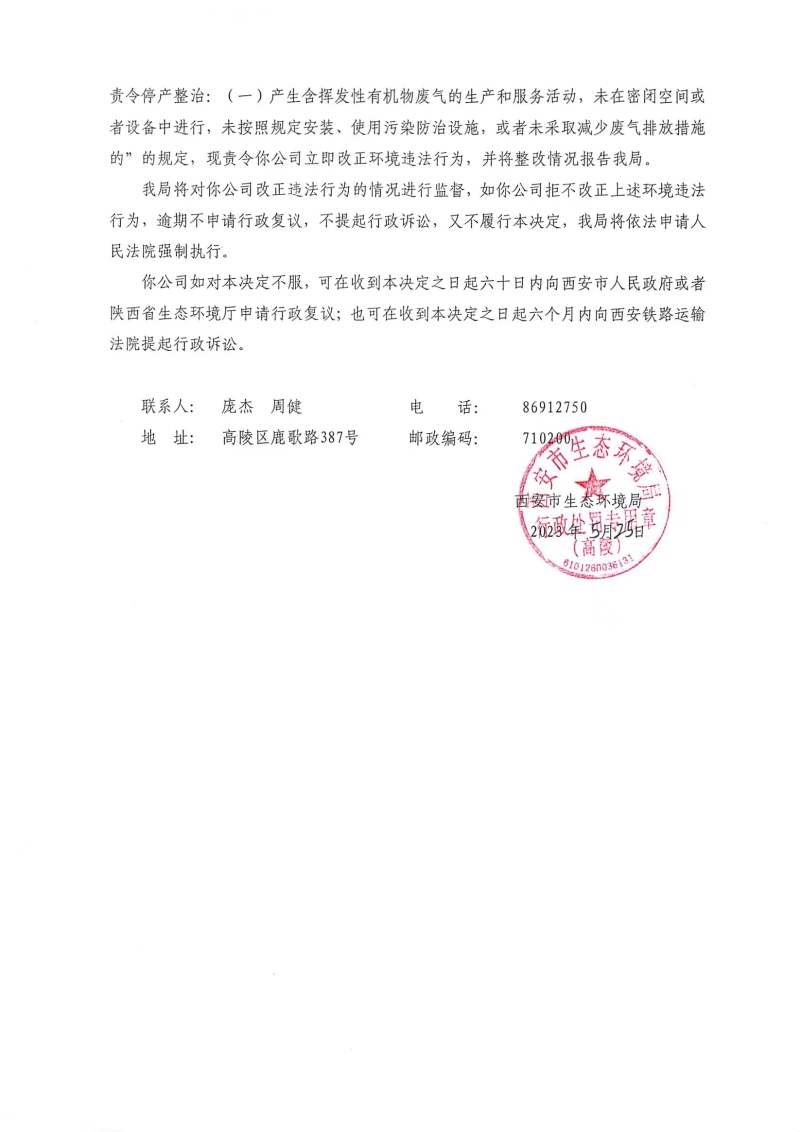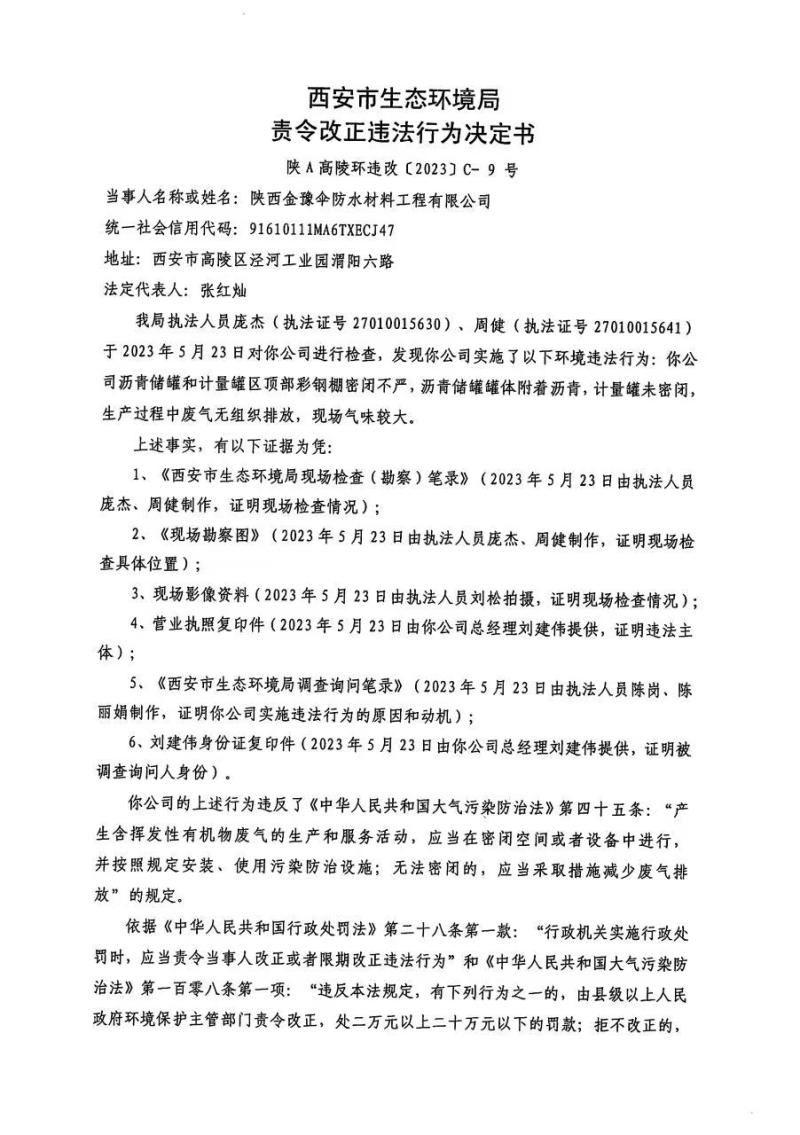 西安市生態(tài)環(huán)境局責令改正違法行為決定書陜A高陵環(huán)違改〔2023〕C-9號 |