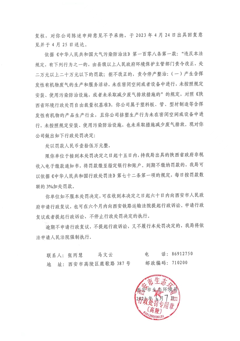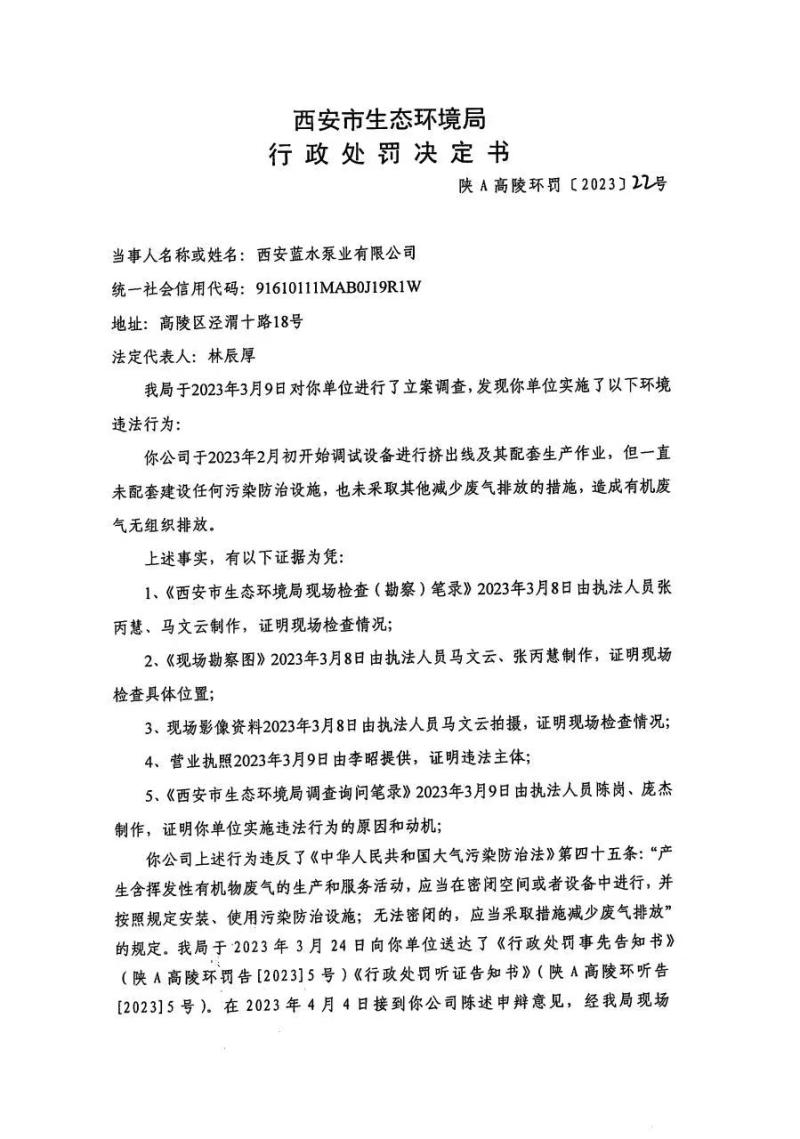 西安市生態環境局行政處罰決定書陜A高陵環罰〔2023〕22號