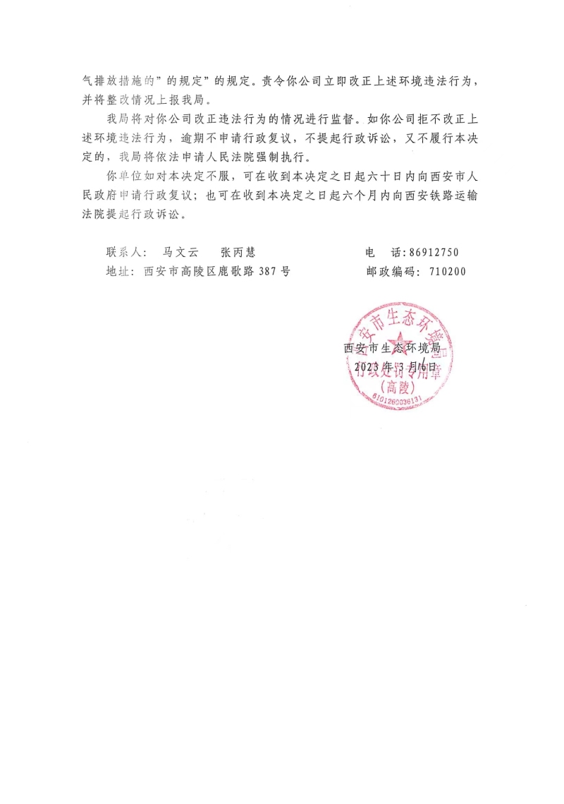 西安市生態(tài)環(huán)境局高陵分局責(zé)令改正違法行為決定書〔2023〕B-1