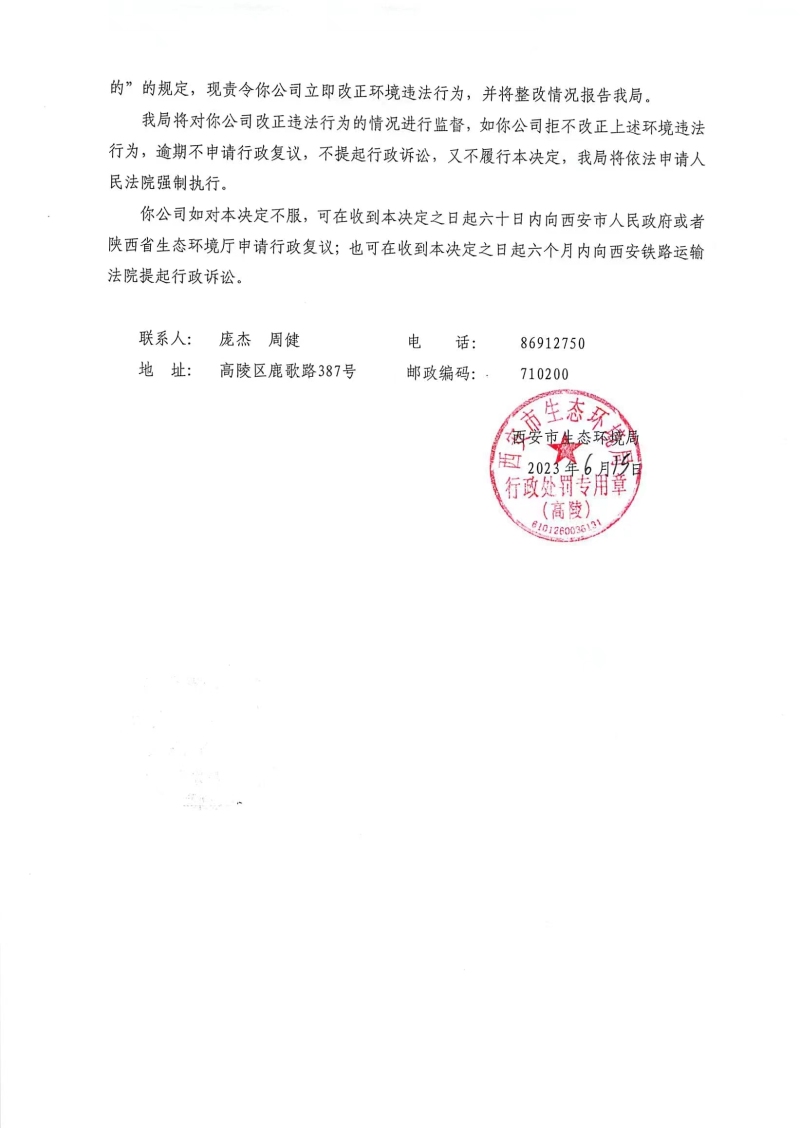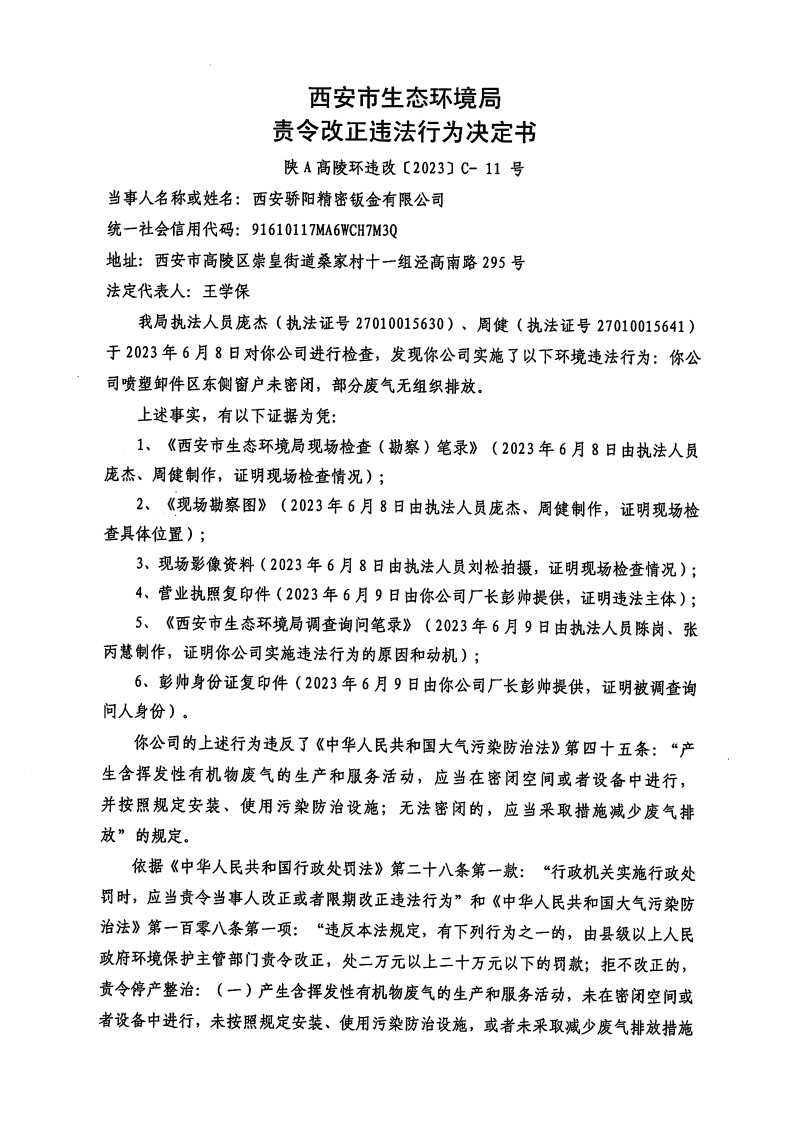 西安市生態(tài)環(huán)境局高陵分局責(zé)令改正違法行為決定書〔2023〕C-11 |