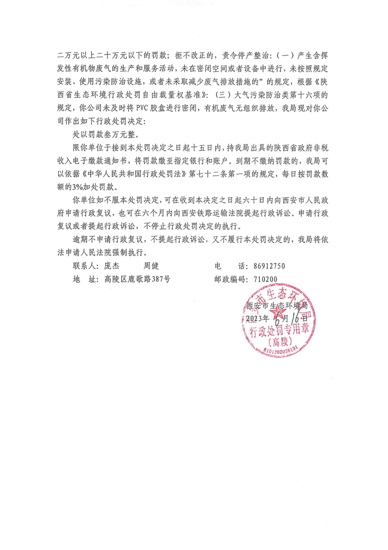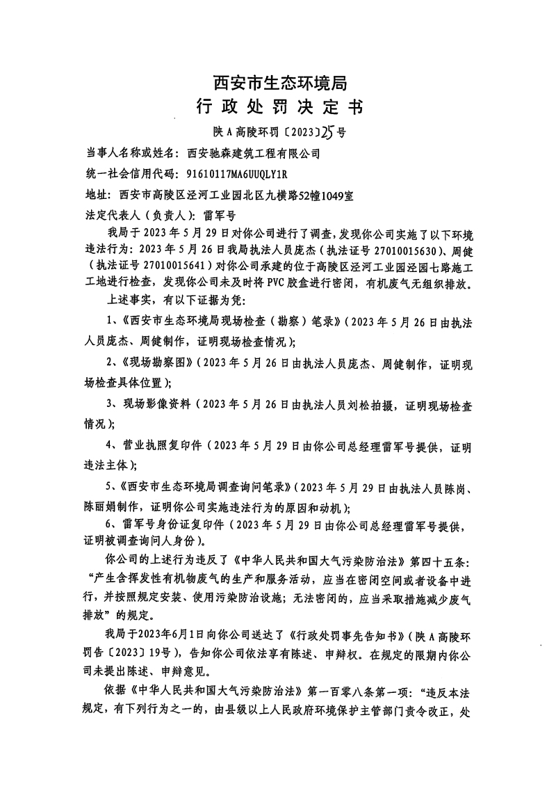 西安市生態(tài)環(huán)境局行政處罰決定書(shū)陜A高陵環(huán)罰〔2023〕25號(hào)