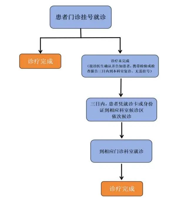“一次掛號管三天”就診模式,指患者從掛號、就診、檢查、檢驗、取藥到門診治療等整個門診就醫全過程,如果因檢驗或檢查當天不能完成或者不能獲取報告,尚未完成診療,在三日內(包含就診當日),攜檢查、檢驗結果到同一院區、同一科室診治同一疾病時,無需再次掛號。