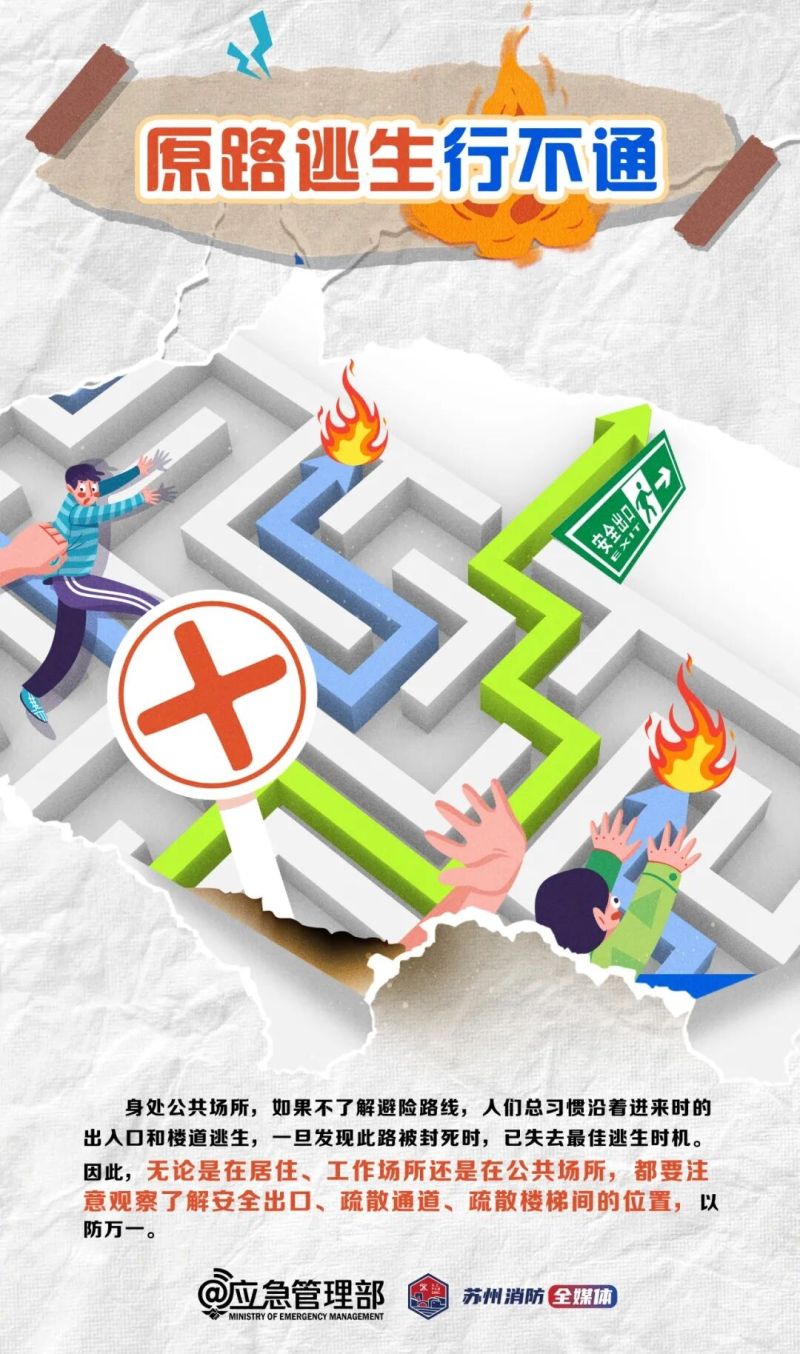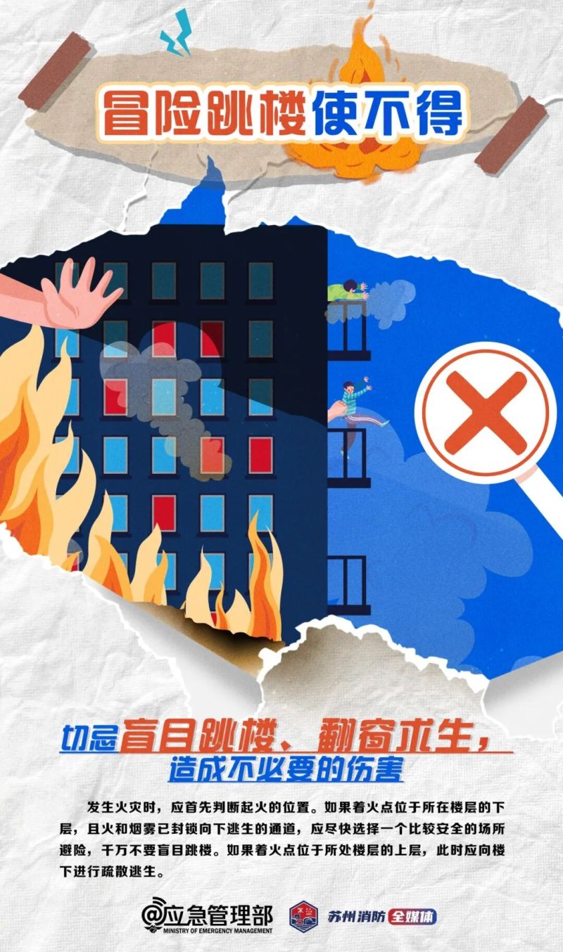 火災(zāi)發(fā)生時要保持冷靜,牢記“小火快跑,濃煙關(guān)門”逃生口訣,需當(dāng)心火場逃生的“誤區(qū)”,消息來源為應(yīng)急管理部。 |