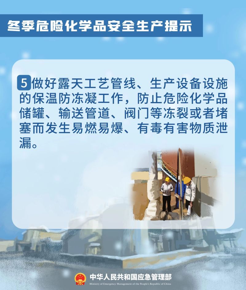 歲末年初,是危化品事故高發時段之一。冬季雨雪冰凍等惡劣天氣,易對裝置設施運行和人員工作狀態造成不利影響,此外趕工期、搶進度也帶來安全隱患。