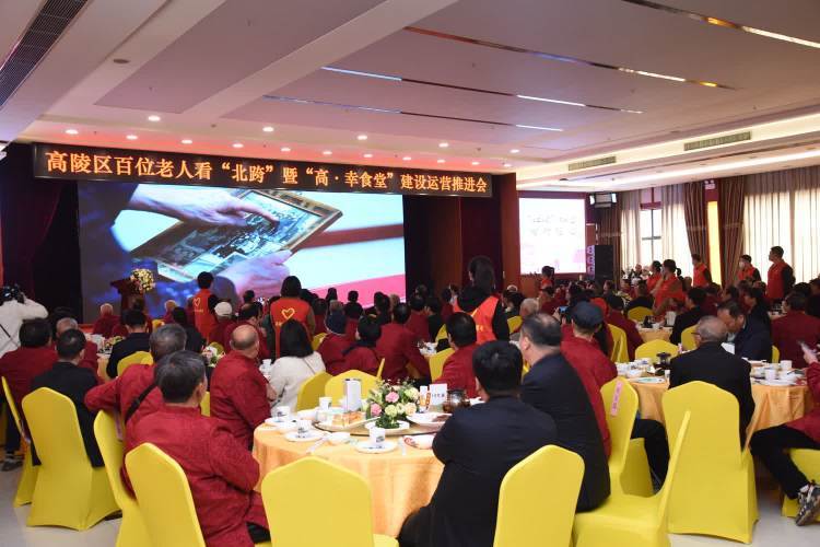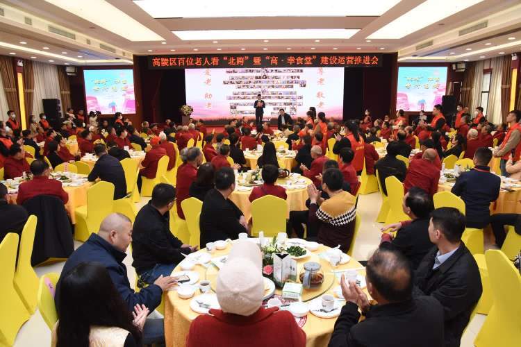 第二階段在區(qū)招待所三樓會議廳舉行百位老人看“北跨”暨“高·幸食堂”建設(shè)運營推進會和“百壽宴”活動。