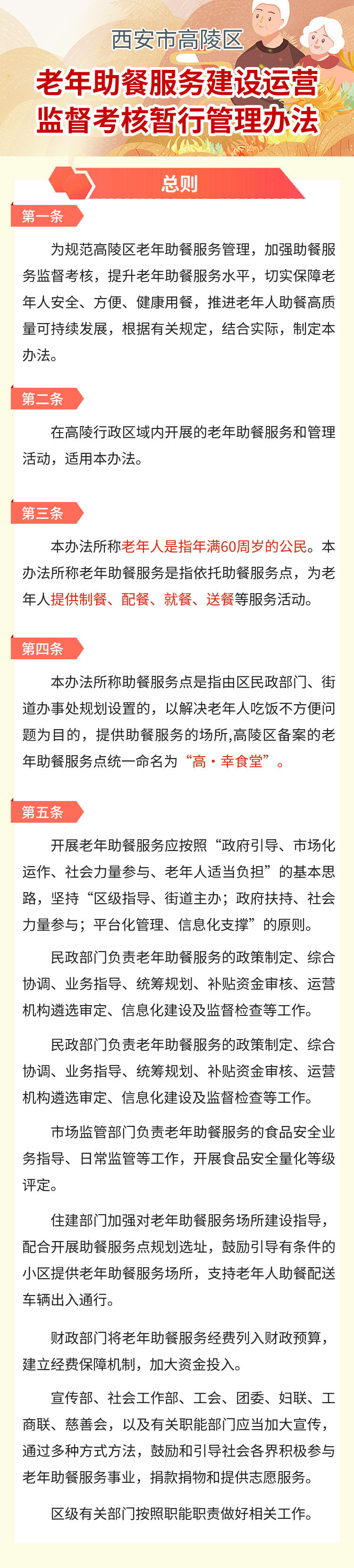 西安市高陵區人民政府辦公室 關于印發《西安市高陵區老年助餐服務建設運營監督考核暫行管理辦法》的通知