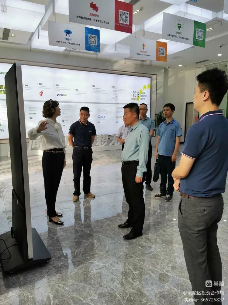 隨后,張躍進一行來到啟迪之星(西安·高新區)基地,參觀啟迪之星展廳及入孵企業,了解啟迪之星發展歷程、孵化模式及啟迪之星陜西區域孵化網絡運營情況,并就高陵項目推進工作進行交流。