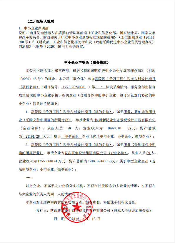 服務類(陜西新鴻業生態景觀設計工程有限公司,聯合體成員:匠心聯創設計集團有限公司)